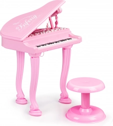 Elegancka różowa konstrukcja z detalami naśladującymi prawdziwy instrument, wszystko podkreślone grą świateł i możliwością dodatkowego akompaniamentu dźwiękowego.