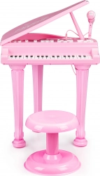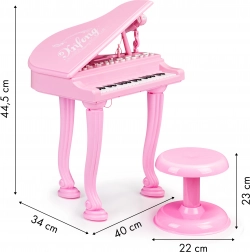 Ciesz się niezapomnianą zabawą z tym różowym pianinem, które przyniesie do twojego domu muzyczną atmosferę. Pianino zostało zaprojektowane tak, aby dzieci mogły komponować własne utwory i zapewnia realistyczny wygląd prawdziwego instrumentu. Zestaw zawiera stołek, który zapewnia wygodę podczas gry dla twojego małego artysty.