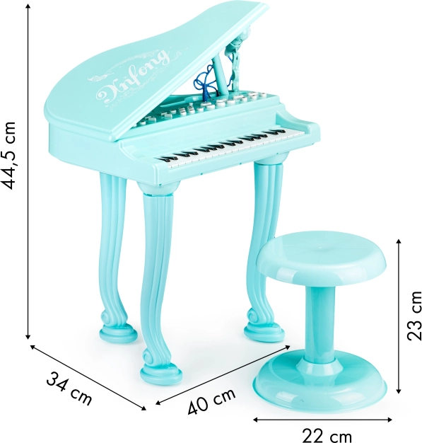 Prezentujemy dziecięce pianino, które pozwoli Twoim dzieciom wkroczyć w świat melodii i komponowania własnych utworów. Ta zabawka wygląda jak prawdziwy instrument z dołączonym stołkiem, co umożliwia Twojemu małemu artyście wygodne siedzenie przed klawiszami. Pianino szybko zyska popularność, a salon przekształci się w salę koncertową.