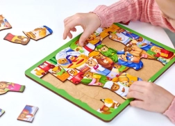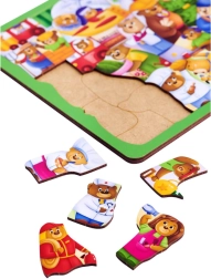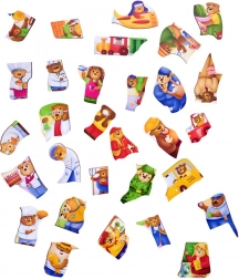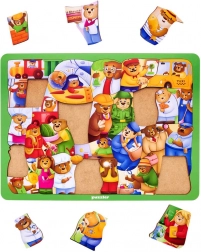 Drewniane puzzle z misiami przedstawiają dzieciom świat różnych zawodów – od ratownika i lekarza po muzyka. Dzięki barwnym ilustracjom i solidnemu, drewnianemu wykonaniu oferują zabawę, która jednocześnie wspiera rozwój ważnych umiejętności.