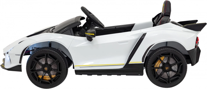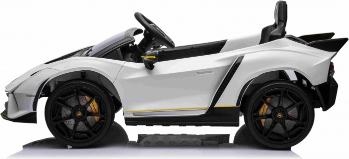 Spełnij dziecięce marzenie o własnym supersporcie. Biała jeżdżąca replika LAMBORGHINI Invencible łączy atrakcyjny design z bezpieczną i komfortową jazdą. Mocny zestaw 4×35 W silników i akumulator 12V/7Ah zapewniają płynny start i dużo mocy, a piankowe koła EVA tłumią nierówności dla gładkiej jazdy w domu i w ogrodzie.