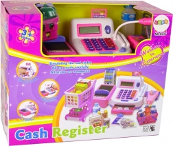 Kasa zawiera kilka świetnych funkcji, takich jak skaner kodów kreskowych, automatyczne otwieranie szuflady kasowej oraz efekty dźwiękowe przy użyciu karty płatniczej. Ten zestaw do zabawy obejmuje także koszyki, losowy wybór produktów spożywczych i wózek na zakupy, tworząc kompletny pakiet do zabawy w sklep.