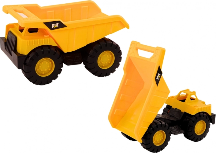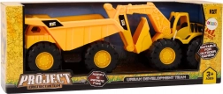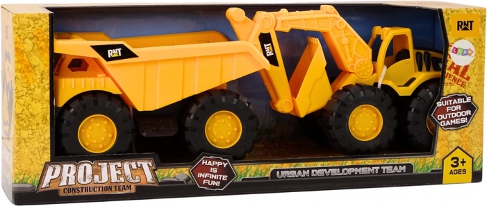 Zestaw maszyn budowlanych: wywrotka i koparka, wersja przeprowadzkowa, żółta