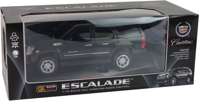Wierne odwzorowanie kultowego CADILLAC ESCALADE w skali 1:16 z eleganckim czarnym lakierem i dopracowanymi elementami nadwozia.