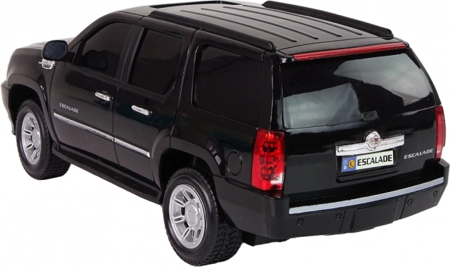 Stylowe auto RC CADILLAC ESCALADE 1:16 w eleganckim czarnym kolorze oferuje realistyczne detale, światła LED oraz efekty dźwiękowe silnika i klaksonu. Dzięki precyzyjnemu zdalnemu sterowaniu łatwo jeździ do przodu/tyłu i skręca na boki. Świetny wybór dla małych i większych fanów motoryzacji, z certyfikatem CE i normą EN71.