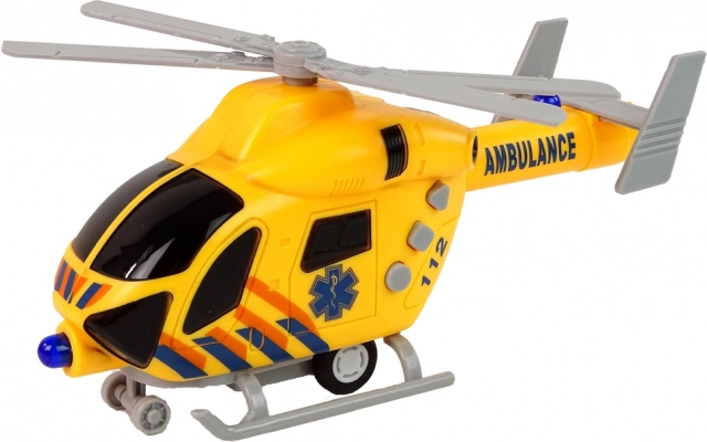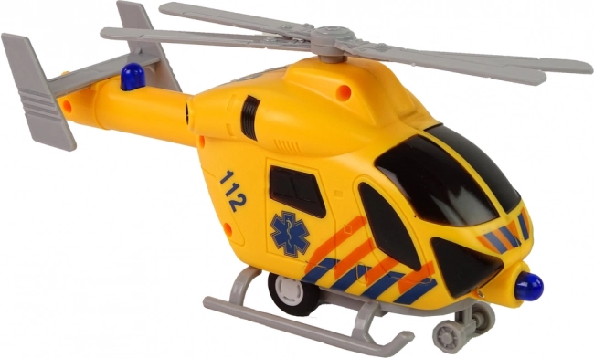 Ten realistyczny helikopter ratunkowy w intensywnie żółtym kolorze przenosi dzieci w świat lotniczych misji. Po naciśnięciu bocznych przycisków uruchamiają się autentyczne dźwięki i migające światła, które potęgują atmosferę akcji ratunkowej. Dzięki napędowi inercyjnemu wystarczy naciągnąć helikopter do tyłu i puścić – pojedzie do przodu bez baterii do napędu ruchu.
