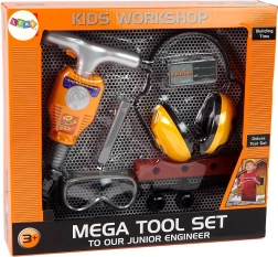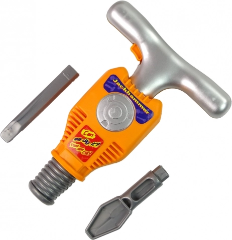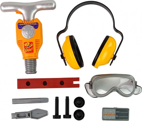 Cały zestaw jest zapakowany w pudełko z przezroczystą witryną, która przyciąga wzrok dziecka. Zestaw zawiera śrubki, które można wkręcać za pomocą młotka i odpowiedniego bitu. Kolejną zaletą tego zestawu jest to, że młoto-wiertło po włożeniu baterii i użyciu pomarańczowego przycisku widocznego na rękojeści zaczyna pracować w charakterystyczny sposób. Dziecko ma ponadto możliwość założyć słuchawki i okulary ochronne, co zapewni mu jeszcze więcej zabawy, ale też bezpieczeństwa podczas korzystania z młota. Wszystkie elementy wykonane są z plastiku i są bezpieczne dla dzieci.