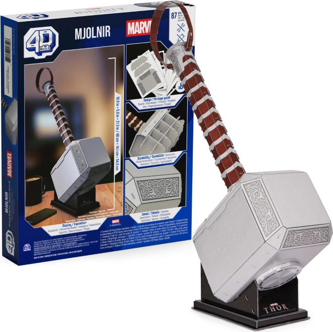 Młot Mjolnir zawiera dopracowane detale oraz podstawkę do wygodnej ekspozycji.
