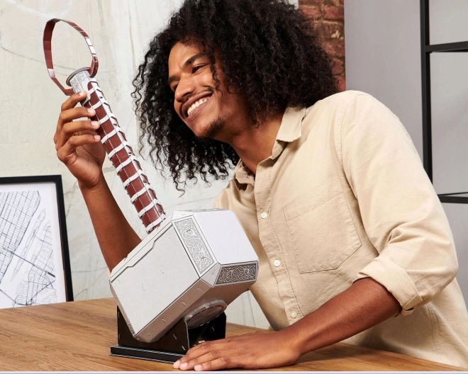 Model młota Thora łatwo się składa z 87 elementów, bez potrzeby użycia kleju ani narzędzi.