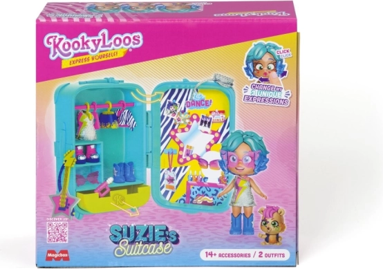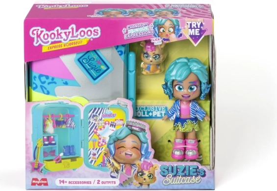 Jesteście gotowi wyruszyć w podróż? Kuferek KookyLoos zawiera wszystko, czego potrzebujecie, aby świetnie się bawić. Czekają na was aż 4 modele do kolekcjonowania! Suzi to prawdziwa znawczyni mody. Jej strój haute couture to najnowszy paryski trend! Gotowi na zwiedzanie jubilera na Place Vendôme i Rue Cambon? To wy decydujecie, który z dwóch strojów założy na najnowszy pokaz mody! Ma też trzy różne miny, które możecie zmieniać jednym kliknięciem. Wszystko możecie spakować do kuferka i zabrać ze sobą! W zestawie: ekskluzywna lalka KookyLoos, 2× strój, 1× zwierzątko, ponad 13 akcesoriów oraz wieszaki.