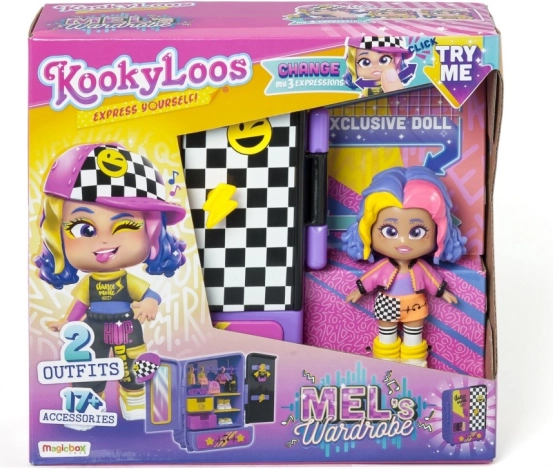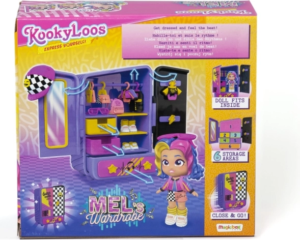 Zanurz się w świecie fantazji z zestawem do zabawy KookyLoos Mel, który przynosi zabawę i kreatywność do każdego momentu zabawy. Zestaw zawiera lalkę Mel, która kocha hip-hop i taniec. Dzięki jej wyrazistym strojom możesz zorganizować własny konkurs taneczny lub pokaz mody w zależności od twojego nastroju. Szafa w eleganckich fioletowo-różowych odcieniach pozwala na przechowywanie wszystkich akcesoriów. Każda zabawa jest wyjątkowa dzięki zmieniającym się wyrazom twarzy lalki prostym kliknięciem.