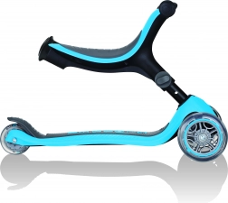 Wielofunkcyjna hulajnoga przeznaczona dla małych dzieci. Z opatentowanym designem, który dostosowuje się do wieku i potrzeb dziecka, przechodzi z trybu jazdy siedzącej na biegówkę, a ostatecznie na hulajnogę.
