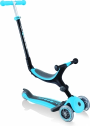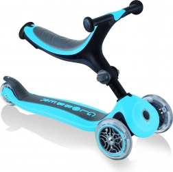 Hulajnoga Globber Go Up składana Plus jest idealna dla dzieci od 15 miesięcy do 7 lat. Ciesz się komfortową i bezpieczną jazdą dzięki zdejmowanej podpórce na nogi i miękkiemu siedzeniu, które można ustawić za pomocą bocznego przycisku na dwóch wysokościach.
