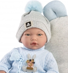 Ręce i nogi są przymocowane do ciała stawami, co pozwala ustawić lalkę w różnych pozycjach, a nawet posadzić. W zestawie znajduje się także smoczek jako uroczy dodatek. Rozmiar lalki to 38 cm, co jest idealne dla większości dzieci.