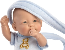 Ta realistyczna lalka niemowlę ma 25 cm i została wykonana z dbałością o każdy szczegół, w tym urocze fałdki i zaznaczoną płeć. Ręce i nogi są przymocowane stawami, co pozwala lalce przyjmować różne pozycje, a nawet siedzieć. Dzięki całowinylowemu ciału nadaje się także do kąpieli.