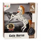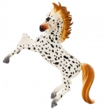 Ta starannie wykonana figurka konia wyróżnia się realistycznymi detalami – biała barwa ze stylowymi kropkami, brązowa grzywa i ogon oraz wyrazista poza, w której koń stoi na dwóch nogach. Tworzy wrażenie ruchu i nadaje każdej dziecięcej farmie lub stajni autentyczną atmosferę.