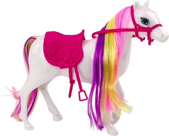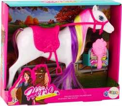 Odkryj magię jeździeckiego świata z figurką białego konia, która zachwyca dopracowanymi detalami i akcesoriami. Dzieci mogą tworzyć kreatywne fryzury za pomocą dołączonej szczotki, a zabawę uzupełnić o regulowane różowe siodło i uzdę. Zabawka świetnie rozwija motorykę małą, wyobraźnię i umiejętności opiekuńcze.