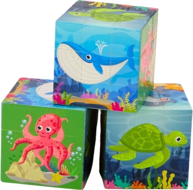 .Zabawka to magiczna kostka-puzzle, która przenosi dzieci w podwodny świat morskich zwierząt i zabawy. Każda ścianka kostki jest ozdobiona wzorem z zabawnymi i kolorowymi motywami morskimi, a każda ścianka zawiera 9 pól.