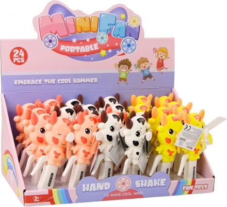 Odkryj nasz uroczy mini wiatraczek w kształcie krowy, który umili i ochłodzi Cię w ciepłe dni! Ten wyjątkowy gadżet napędzany jest ręcznie poprzez naciśnięcie białej rączki, dzięki czemu jego używanie jest niezwykle proste i całkowicie bezpieczne dla dzieci. Wiatraczek dostępny jest w trzech przeuroczych kolorach: żółtym, białym i różowym, więc możesz wybrać swój ulubiony.