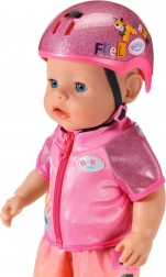 Bezpieczeństwo podczas każdej przejażdżki! Stylowy kask rowerowy dla lalek BABY born w rozmiarze 43 cm łączy intensywnie różowy, brokatowy design z otworami wentylacyjnymi i regulowanym paskiem dla wygodnej i bezpiecznej zabawy na rowerze, jeździku czy hulajnodze.