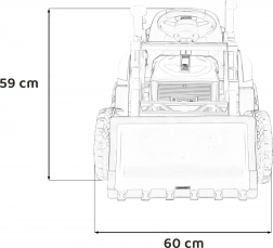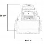 - Długość z łopatą 130 cm, Szerokość 60 cm, Wysokość 59 cm