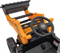 Za pomocą panelu sterowania i kierownicy dzieci mogą łatwo sterować oraz pracować z łopatą dla realistycznych doświadczeń budowlanych.