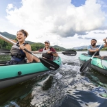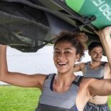 Dwa wymienne stateczniki dla precyzyjnego prowadzenia, aluminiowe wiosła 230 cm oraz ręczna pompka w zestawie. Łatwe pompowanie, przenoszenie i przechowywanie.