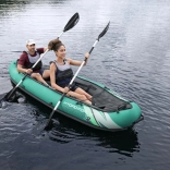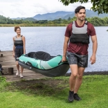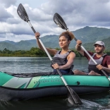 Ventura Elite X2 to solidny nadmuchiwany kajak zaprojektowany do rekreacyjnego wiosłowania we dwoje. Dzięki jakościowemu połączeniu nylonu i PVC jest odporny na ścieranie, promieniowanie UV i słoną wodę, a wyjmowane komory boczne oraz sztywna podłoga w technologii I-beam zapewniają znakomitą stabilność i pewność na wodzie. Regulowane piankowe siedzenia z oparciem i kieszenią zwiększają komfort także podczas dłuższych wypraw.