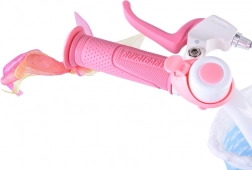 Pełna osłona łańcucha chroni ubranie i małe palce, a przednie i tylne hamulce bębnowe zapewniają niezawodne wytracanie prędkości. Praktyczny koszyk, dzwonek i wstążki na kierownicy dodają zabawnego stylu. W zestawie znajduje się także prowadnik dla rodziców, który ułatwia pierwsze przejażdżki.