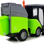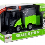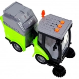 Zamiatarka wyposażona jest w obracające się szczotki, które skutecznie zamiatają śmieci z drogi, podobnie jak prawdziwe pojazdy służby utrzymania czystości.