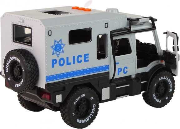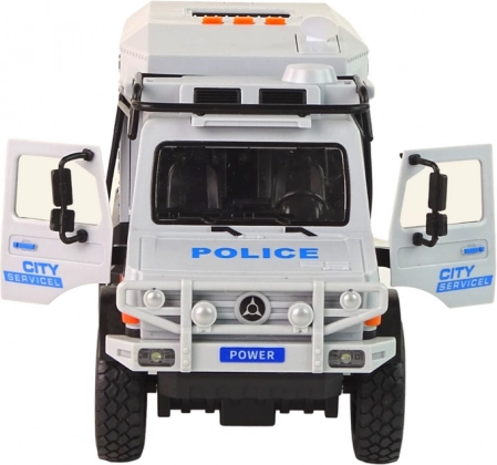 Jeżdżący terenowy pojazd służb miejskich wykonano w skali 1:14, co czyni go niezwykle detalicznym modelem. Wyposażony jest w napęd typu pull-back – po prostu pociągnij do tyłu i puść, aby ruszył do przodu z pełną prędkością.