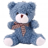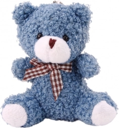 Niebieski pluszowy miś to idealny towarzysz codziennych zabaw i świetny prezent dla każdego dziecka. Dzięki niewielkim wymiarom może służyć jako brelok, który można przypiąć do kluczy, plecaka lub torby. Miś ma na szyi brązową kokardkę, która dodaje mu elegancji i uroku.
