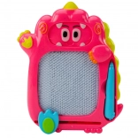 Ta tablica oferuje dwie strony zabawy. Z jednej strony znajduje się powierzchnia do rysowania działająca jak magiczna tablica z dołączonym pisakiem, który pozwala dzieciom rysować różne wzory i kształty. Szybkie wymazywanie dla nowego tworzenia zapewnia suwak.