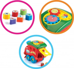 Kolorowa układanka w kształcie lokomotywy jest przeznaczona dla najmłodszych. Z tym elementem maluch z pewnością będzie się świetnie bawić! Poszczególne kształty z obrazkami można wkładać do odpowiednich otworów. Układanka rozwija u dziecka zdolności motoryczne, wzrokowe i słuchowe.