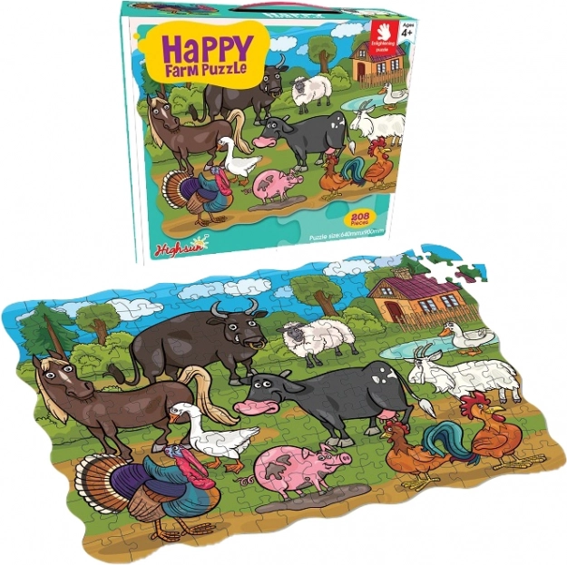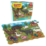 Puzzle Szczęśliwa farma zapewniają dzieciom kreatywną i mądrą zabawę podczas układania 208 elementów z motywem farmy i jej mieszkańców.