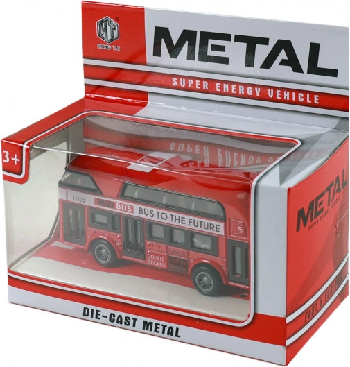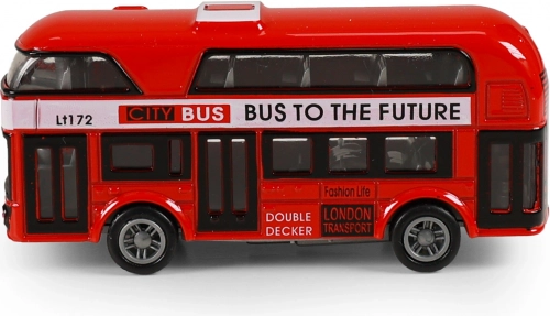 Stylowy model legendarnego londyńskiego piętrowego autobusu w czerwonym kolorze ucieszy małych i dużych kolekcjonerów. Metalowe wykonanie, swobodnie obracające się koła oraz napęd typu pull-back zapewniają świetną zabawę. Kompaktowa długość ok. 9,5 cm i dopracowane detale czynią z tego modelu świetny prezent i kolekcjonerski eksponat.