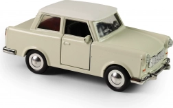 Odkryj stylowy kolekcjonerski model – metalowy retro model Trabanta o długości ok. 12 cm. Dzięki napędowi ciernemu (pull-back) żwawo rusza do przodu, ma otwierane drzwi i ucieszy dzieci oraz zapalonych kolekcjonerów modeli aut.