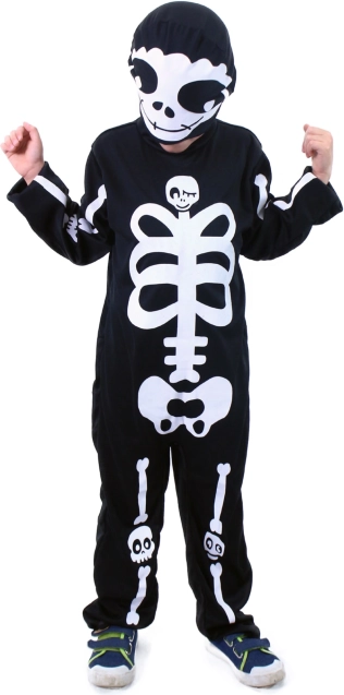 Ten stylowy kostium kościotrupa w mgnieniu oka przemieni Twoje dziecko w gwiazdę każdego karnawału, Halloween lub tematycznej imprezy. Dzięki wygodnej czarnej kombinezonie z wyrazistym białym nadrukiem szkieletu oraz masce stworzy autentyczny, a zarazem zabawnie upiorny wygląd.