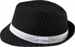 Delikatne białe prążki na czarnym tle nadają kapeluszowi ponadczasowy styl, który łatwo połączysz zarówno z kostiumem, jak i smart casualowym zestawem.