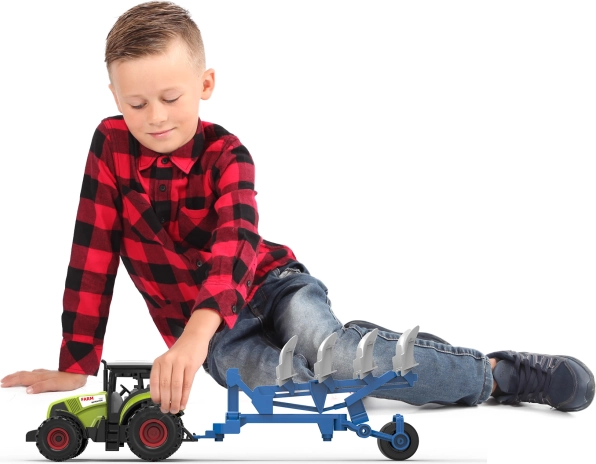 Plastowy traktor ze światłem i dźwiękiem z przyczepą do orki