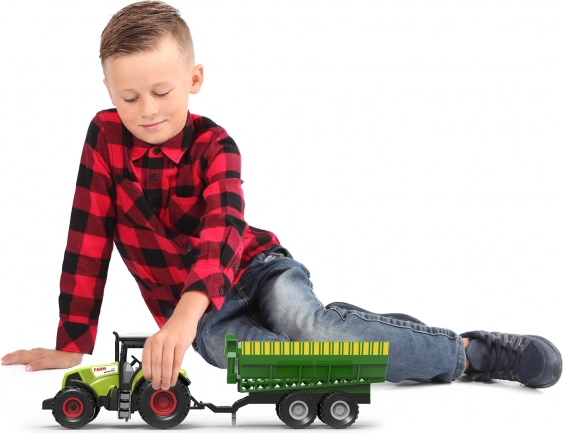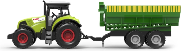 Ten realistyczny traktor z przyczepą jest idealny do dziecięcych zabaw w farmę. Dzięki napędowi bezwładnościowemu łatwo rusza, a przyciski aktywują realistyczne dźwięki i efekty świetlne, które dodają autentyczności. Przyczepę można łatwo odłączyć i używać traktora samodzielnie.