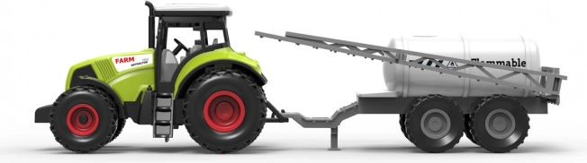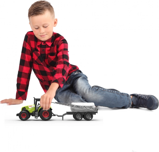 Nowoczesny plastikowy traktor z odłączaną przyczepą do oprysku ucieszy każdego małego farmera. Dzięki napędowi na mechanizm spustowy, długości 37 cm oraz realistycznym dźwiękom i efektom świetlnym oferuje mnóstwo zabawy i rozwija dziecięcą wyobraźnię. Baterie w zestawie.