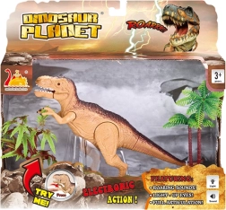Tyrannosaurus rex z dźwiękiem i światłem – brązowy interaktywny dinozaur 23 cm