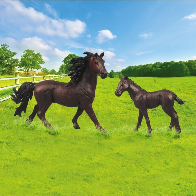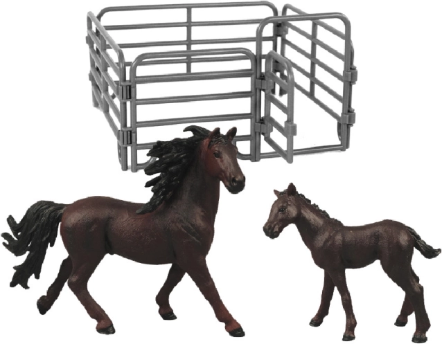 Uzupełnij swoją kolekcję zabawek o ten piękny zestaw koni z zagrodą. Figurka konia i źrebięcia jest realistycznie wykonana i cieszy wszystkie grupy wiekowe. Opakowanie zawiera:
