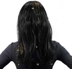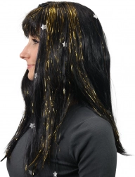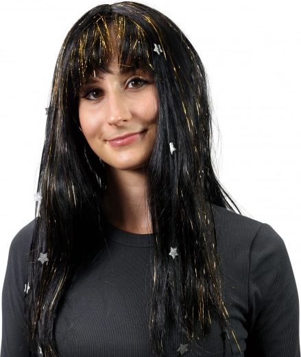 Peruka dodaje złote pasy i srebrne gwiazdy do klasycznych czarnych włosów, co czyni ją świetnym dodatkiem na każdą imprezę tematyczną.