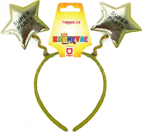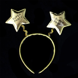 Karnawałowa opaska z napisem SUPER PARTY to stylowy dodatek na każdą imprezę, który przyciąga uwagę dzięki złotym gwiazdeczkom.