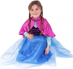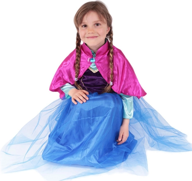 Ten stylowy kostium przemieni każdą dziewczynkę w odważną księżniczkę gotową na zimowe przygody. Bogate czarno‑niebieskie barwy ze złotymi detalami oraz różowy satynowy płaszcz z ozdobną klamrą tworzą efektowny wygląd na karnawał, urodziny i przebieranki w domu.