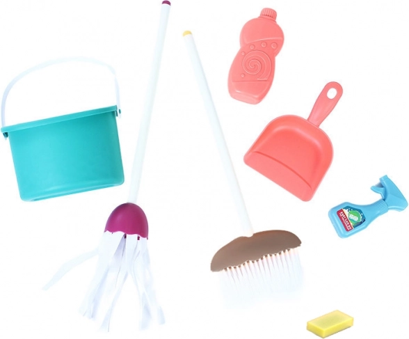 Zabawny dziecięcy zestaw do sprzątania ucieszy małych pomocników podczas zabawy w dom. Zawiera mop, wiaderko, zmiotkę i szufelkę oraz dodatki przypominające środki czystości, aby sprzątanie było pełne zabawy i bezpieczne.