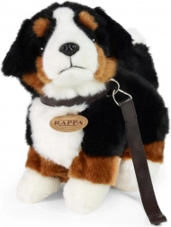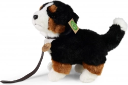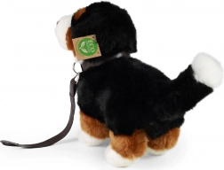 Pluszowy pies ma realistyczne barwy: czarną, białą i brązową, co tworzy autentyczny wygląd berneńskiego psa pasterskiego.