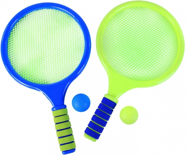 Ciesz się letnią zabawą na plaży i w ogrodzie z tym praktycznym zestawem. Zawiera 2 paletki z siateczką oraz 2 plastikowe piłeczki. Paletki wykonano z trwałego PVC z materiałowym wypełnieniem, dzięki czemu są lekkie, wygodne w dłoni i gotowe do beztroskiej gry.